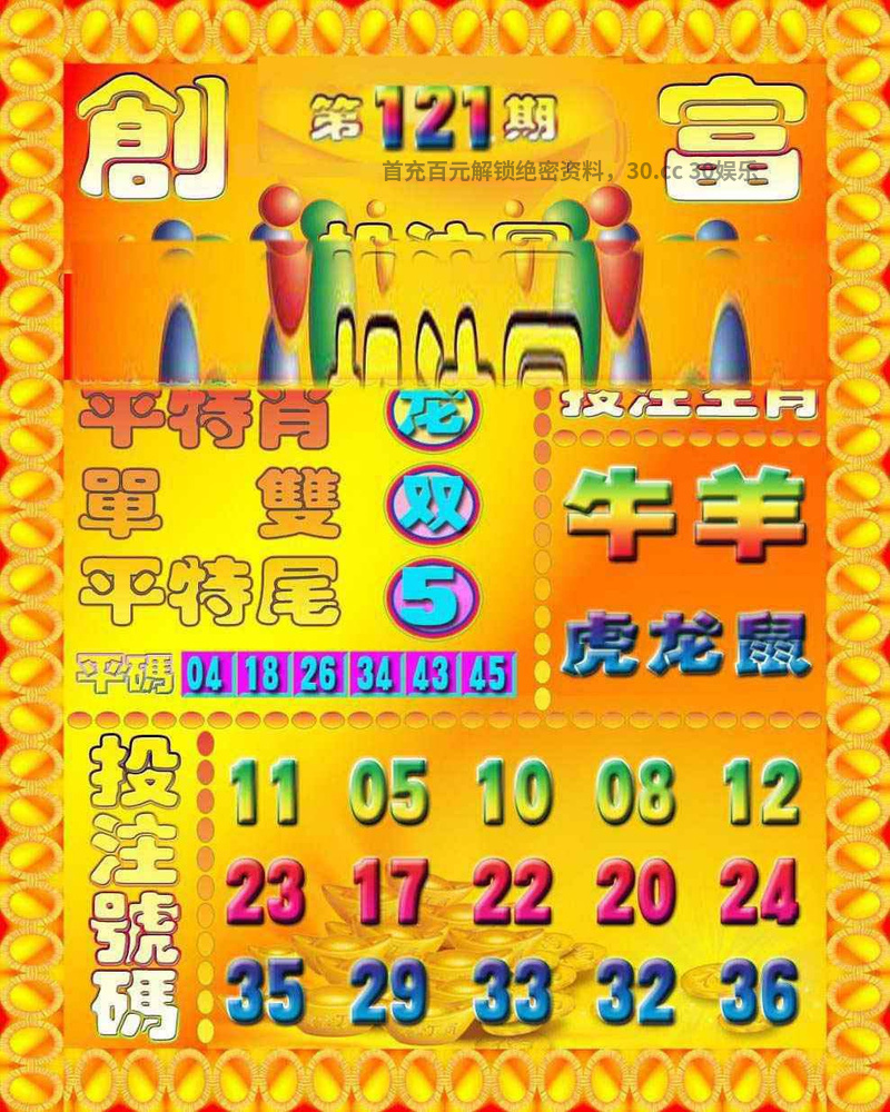 | 121期:天地两肖【天肖+鼠鸡】开:兔15准 |